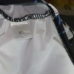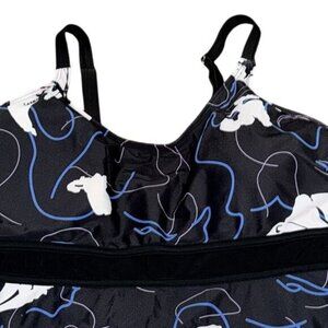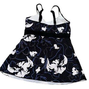 Black & White Floral Print Tankini Top XL Adjustable Straps Swimwear