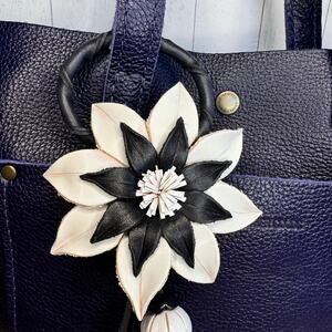Black White Flower Purse Charm Genuine Leather Flower Bag Charm NEW FAST SHIP