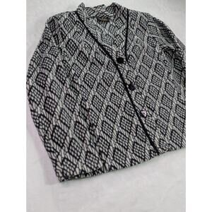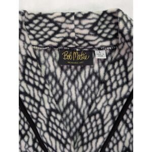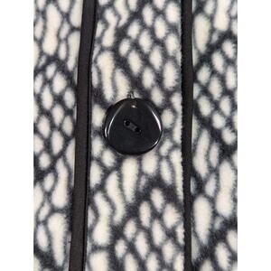 Black & White Geo/Argyle Print Size Large Fleece Button Up Jacket by Bob Mackie