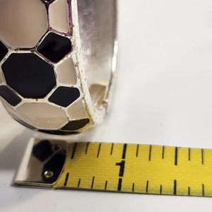 Black White Geometric Enamel Oval Clamper Bracelet Silver Tone Fashion Jewelry