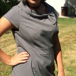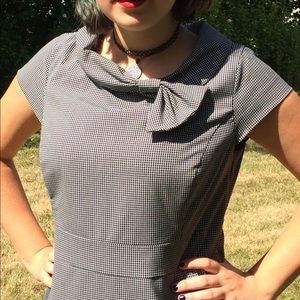Black & White Gingham Bow Fitted Party Dress 12/L