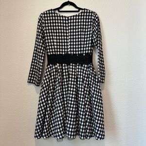 Black & White Gingham Fit & Flare Dress w/ Lace Waist & Tulle Lining Size Small