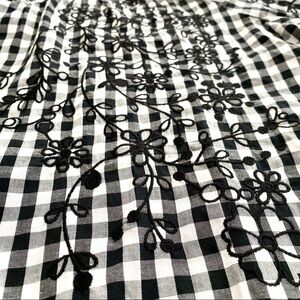 Isaac Mizrahi Black White Gingham Boho Floral Embroidery Top Blouse Size 8