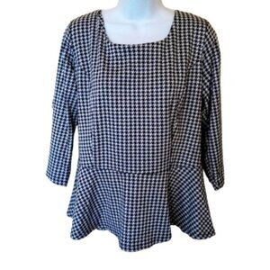 Black White Houndstooth Peplum Top XL