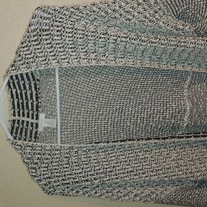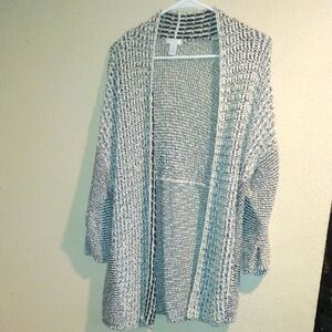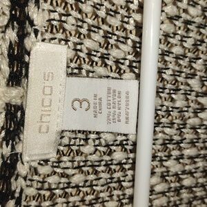 Black White Knit Chico's Long Line Cardigan Cotton Blend 3/4 Sleeve Sweater XL. Great condition
