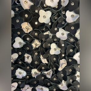 Black White Leather Purse Flowers Applique Shoulder Bag Glam Luxury Amerileather