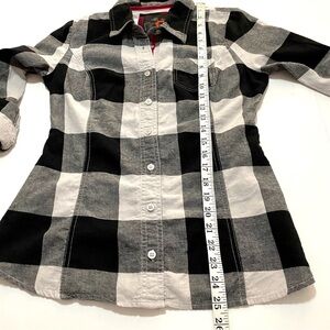 G by Guess Black White Long Sleeve Convertible Plaid Cotton Flannel Shirt M