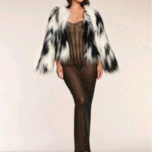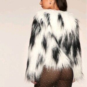 Black & White Luxurious Fluffy Patchwork Long Sleeve Jacket, Fall/Winter