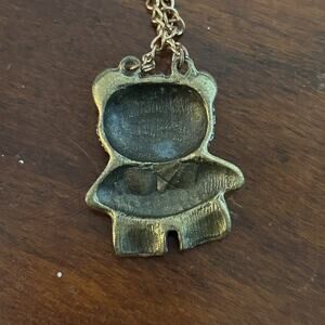Black & White Panda Bear Crystal Pendant Necklace Gold Tone Chain Bling 30”