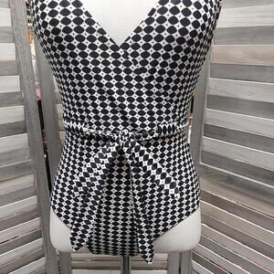For a striking swimsuit that shows off your chic sense of style, look no further than the Belted Wrap Medium Coverage One-Piece Swimsuit from Kona Sol™. A wrap-style V-neckline adds a touch of flirtiness to the modest one-piece silhouette, and removable cups let you choose how much bust coverage you want from one wear to the next. A tie belt lets you cinch in the waist to create a figure-flattering look, and an allover black and white pattern adds a sophisticated finish. Simply slip on a pair of palazzo pants to take the swimsuit from the water to your next outing.