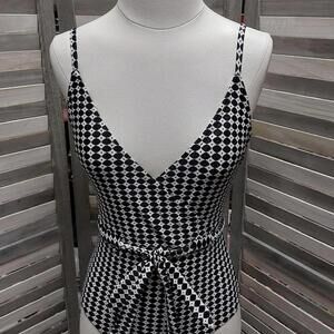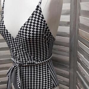 Black White Pattern Belted Wrap V Neck One Piece | Kona Sol | Small (4/6)