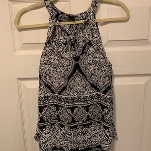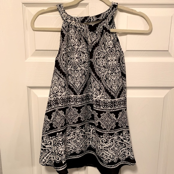 From Kohl’s: black and white patterned high neck tank top. Light weight and airy, great for summer.