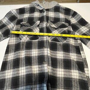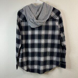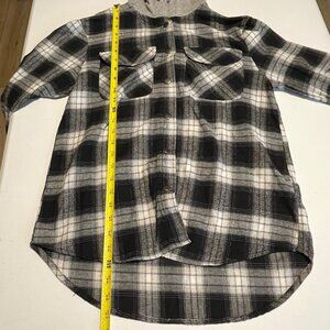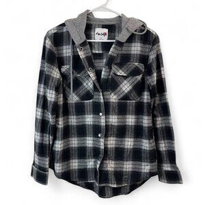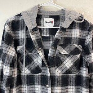 Black & White Plaid Button-Up Shirt With Gray Hood By Miss Selfie S
