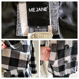 Indulge in the timeless elegance of this Me Jane plaid peacoat, featuring a striking black and white checkered design. This garment not only offers a stylish and sophisticated look but also delivers comfort with its soft polyester composition. The double-breasted front adds a classic touch, while the medium size ensures a flattering fit. Shell & Lining 100% Polyester