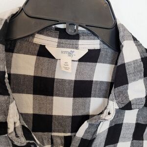 Black White Plaid Flannel Shirt Women's Button Front Terra & Sky Cabin Size 14W