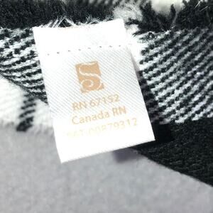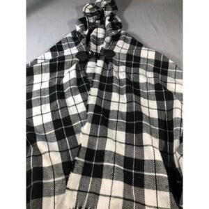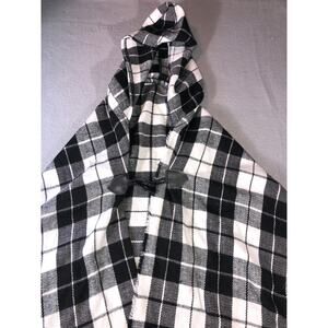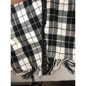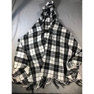 Black White Plaid Hooded Poncho Cape Toggle Closure Fringe Cozy Wrap cottage