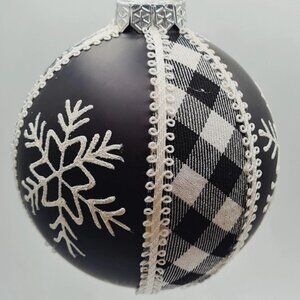 Black White Plaid Snowflake Ball Large Glitter Glass Ornament 4" Set 2 Christmas Winter Decor Gerson