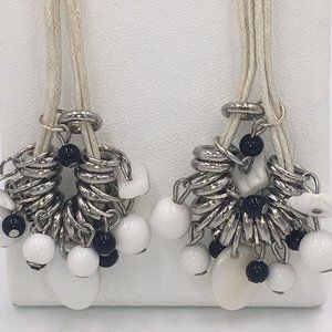Black & White Plastic Beads Silver Tone Metal Circles Dangle Pierced EARRINGS.