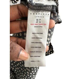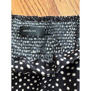 Black & White Polka Dot Long Sleeve Midi Peasant Dress Square Neck Ruched Size L