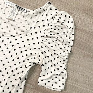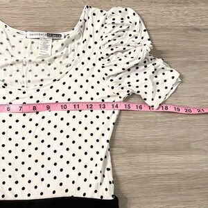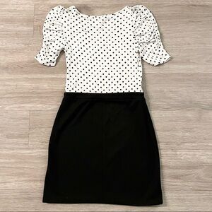 Black & White Polka Dot Ruche Puff Sleeve Bodycon Retro Dress Small