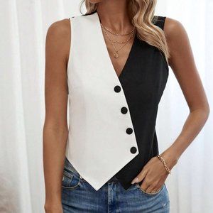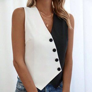Black & White Preppy Womens Two Tone Button Front Vest Blazer