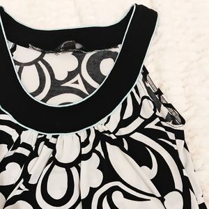 Black & White Printed Tank Top w/ Mint Detail