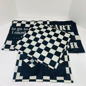 Rev up your decor with this set of 4 racing-themed pillow covers featuring eye-catching checkered designs, racing flags, and bold racing-inspired text.