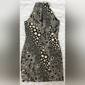 ๐ Black White Retro Sleeveless Geometric Circle Print Patterned Dress Size 2๐