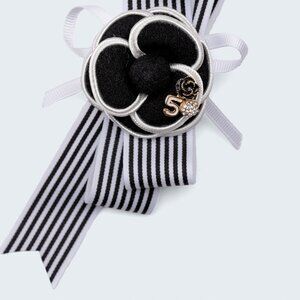 Classic black & white striped ribbon with beautifully structured camellia brooch