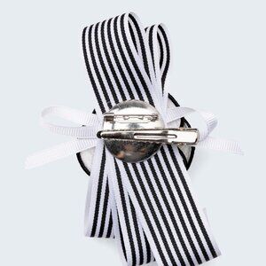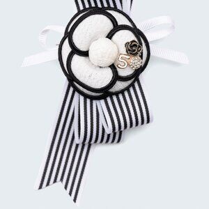Classic black & white striped ribbon with beautifully structured camellia brooch