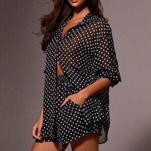 Black & White Sexy Women's polka dot button down top and shorts Two Pieces set