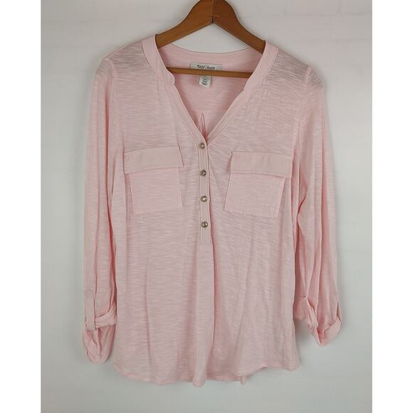 Black White Size Large Women Pockets Keyhole Tab Sleeve Hi Lo.