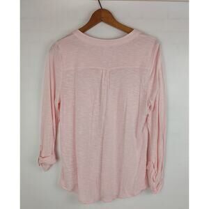 Black White Size Large Women Pockets Keyhole Tab Sleeve Hi Lo