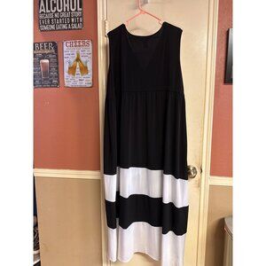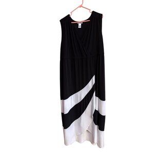 Black & White Sleeveless Maxi Dress With Asymmetrical Stripes Plus Size 3X Cathe