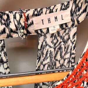 Black & White Sleeveless Maxi Dress With Red Crochet Detail By THML