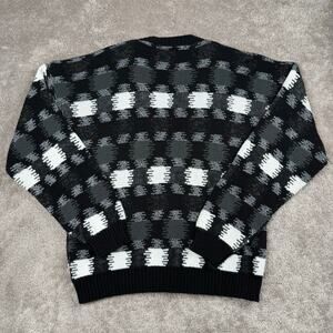 Black White Static Knit Sweater Cardigan Size XL Preppy Grunge Grandpa Area