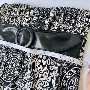 Black & White Strapless Dress w/ Reflective Embellishments & Faux Leather Belt
