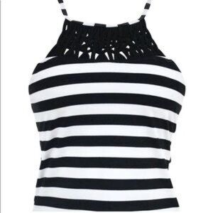Black & White Stripe High Neck Halter Swim Tankini Top