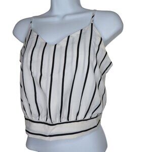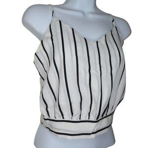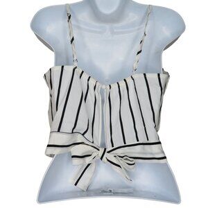 Black White Striped Crop Cami Tank Top S Adjustable Straps Open Back Tie Waist