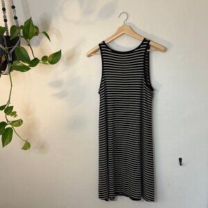 A versatile and comfortable black-and-white striped midi dress from A New Day. This sleeveless dress features a classic round neckline and a flowy, flattering silhouette, perfect for casual wear or layering with a jacket. Lightweight and breathable, making it great for warm weather or transitional seasons.