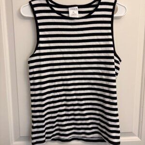 Classic and versatile black and white striped sleeveless tank top. It features a ribbed knit texture, round neckline, and straight hem. Lightweight and comfortable, perfect for layering or wearing on its own.