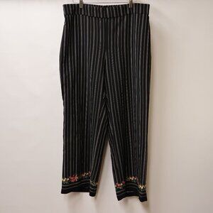 Black & White Striped Womens Pants With Floral Hem Detail By Roz & Ali Size 14