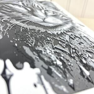 The dramatic grayscale palette and fluid splash design give this piece a contemporary edge, making it an eye-catching addition to any living room, office, or gallery wall. A must-have for feline fans with a taste for the bold and beautiful.