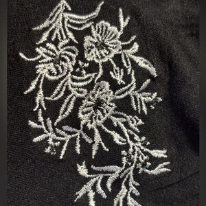 Black & White Top Size XL Floral Embroidery Bell Sleeve Peasant Whimsigoth