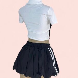 black and white, crop polo, lace accents, pleated skirt, sporty chic, athletic style, minimalist, monochrome, summer outfit, trendy two-piece