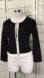 Black with white band trim wool blend zipper front crop style long sleeve sweater