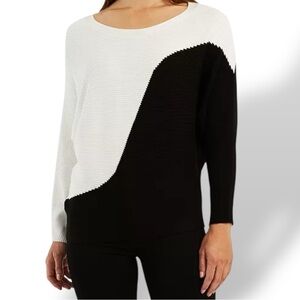 Black & White Wave Colorblock Dolman Sweater