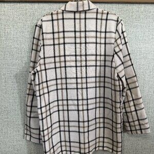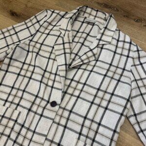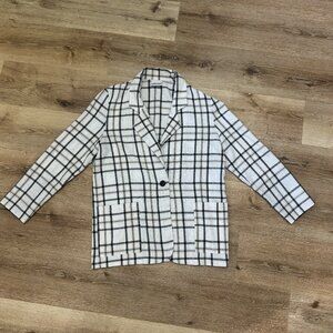 This blazer features a black and white windowpane or check pattern, making it a versatile staple that never goes out of style.