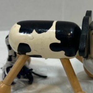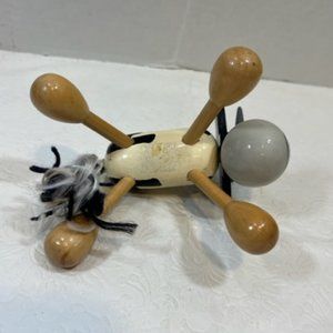 Black & White Wooden 4 Leg Toy Cow Figurine Massager 3.75"x5" Collectible