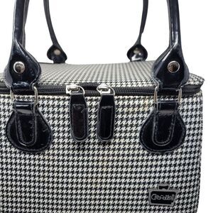 This chic Caboodles bucket, lunch box, cosmetic bag combines functionality and style. Its compact size, durable handle, and organized compartments make it ideal for travel or daily use.